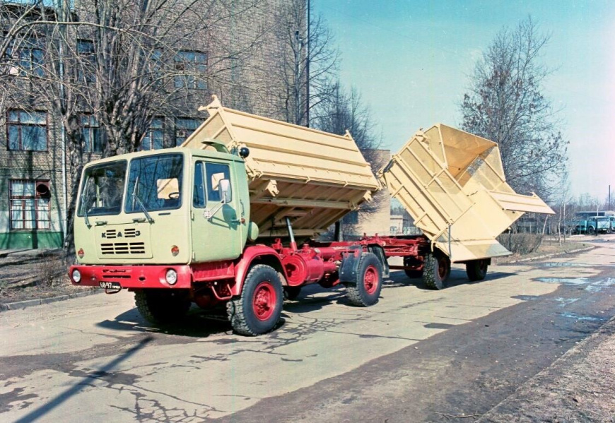 Так появились автомобили «Колхида» с бескапотной компоновкой, которые отличались высокой маневренностью для работы в городских условиях и на стройках. Основные компоненты поставлял Завод имени Лихачёва, однако внешне КАЗ заметно отличался от ЗИЛ.